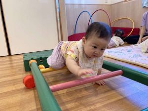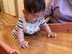 日頃から全身を使った遊びを取り入れていくことでハイハイが上手になったり、歩行が安定してきて、保育者と手を繋いで歩けるようになってきました。