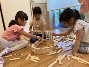 物作りが、大好きな子ども達。特に、最近、夢中になっているのがカプラ。先日、皆で、作品作りをしました。今までは、個々で作っていましたが、今回は共同制作。まずは、見本となる作品の写真を見せ、子ども達にイメージを持ってもらい、話し合いがスタート。
