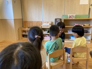 座っている子も、いつ自分の所に来るのかわくわくしながら待っています。