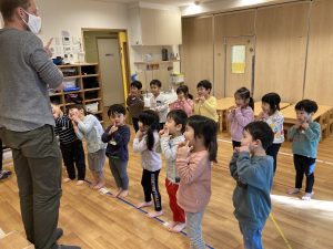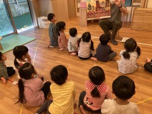 講師の先生がお話するのは英語だけですが、子ども達は興味津々、嬉しそうにプログラムに参加しています。