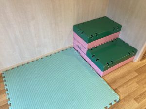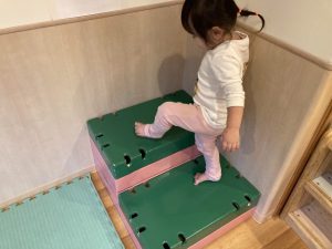 今月は巧技台を階段のように設置し、階段登りをしています。