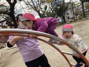 最近は、少し難しいアスレチック遊具にも挑戦しています。