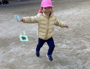 凧揚げですが「先生をつかまえるぞ~」とおいかけっこになり、たくさん走って楽しみました。