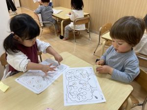 シール貼りコーナーでは、指先を器用に使って