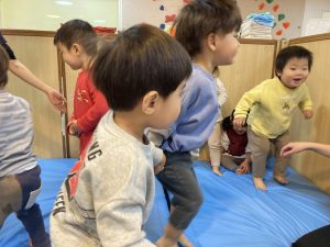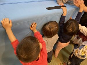 今日は、大型マットを使って、室内遊びを楽しみました。