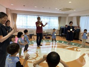 「むすんでひらいて」の歌で大盛り上がり![]()