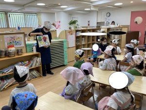 幼児クラスでは、三色食品群の紙芝居を見て、
