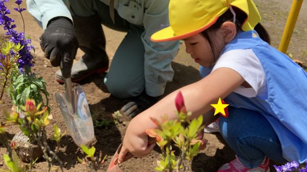小さな手で植えていきます