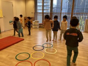 フラットフープは右足、左足、両足と考えながら跳んでいました。