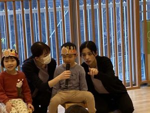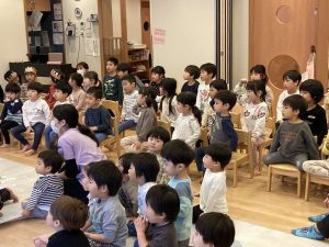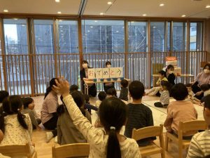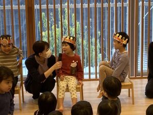 みんなで「コンコンクシャンのうた」を歌ってから、誕生児のインタビュー!
