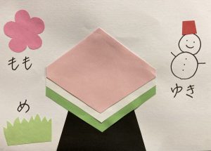 ひなまつりの由来や、菱餅についての話を真剣に聞いていました。