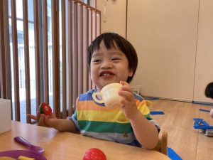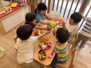 ままごとではご飯を作ったり、皆で乾杯をしたりして楽しんでいます。