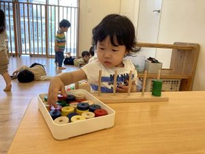 最近は机上では、プラステンやビジーボードや積み木など様々な玩具で指先を使って遊ぶことも大好きです。