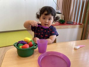ままごとではご飯を作ったり、皆で乾杯をしたりして楽しんでいます。