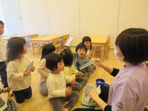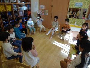 ぎんが組では、みんなで丸くなって自己紹介をしました。