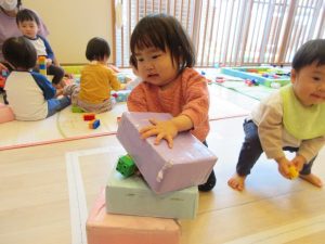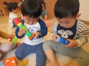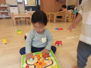 ブロックも人気ですがパズルや型はめブロック等の遊びが人気です。