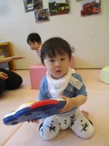 初めての保育園生活にも少しずつ慣れ、自分から玩具を手にしたり、