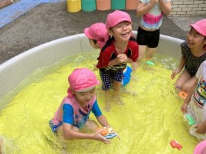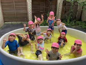 楽しみにしていたプールでたくさん遊ぶことができ終始、満面の笑みを浮かべておりとても嬉しそうでした。