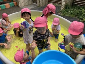 玩具をバケツに集め「やった!5個も取れたよ!」と、嬉しそうな声がたくさんあり喜びが溢れていました。