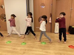 次にボールを投げる時には「とん・とん・くるっ!」と、いう掛け声と共に投げていきました。
