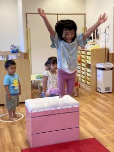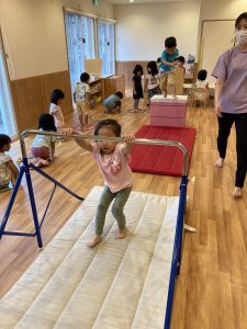 鉄棒に跳び箱楽しんでいる姿がありました♪