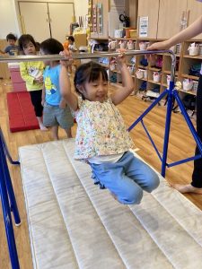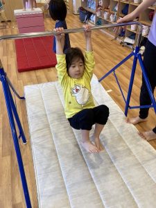 この時期は鉄棒で自分の力で自分の体を持ち上げることが大事です!!