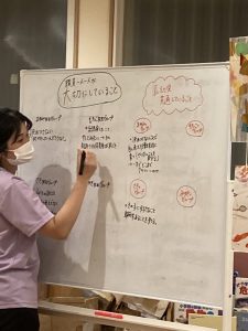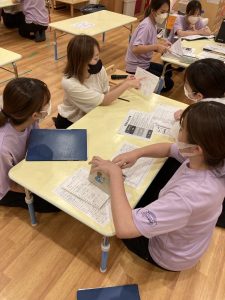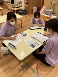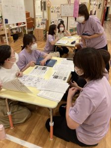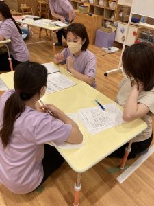 乳幼児クラス・看護師・栄養士と混ぜてグループワークをしていると