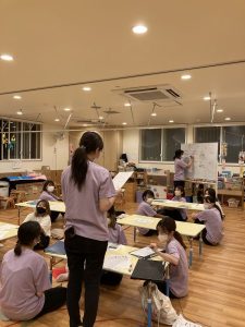 他クラス職員に見学してもらい、気づきや学びをシートに記入していく、