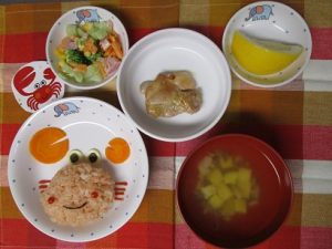 可愛いかにこちゃんのご飯に大喜びの子どもたち。