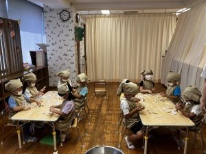 みんながほぐしてくれたきのこは、給食の汁物で美味しくいただきました!