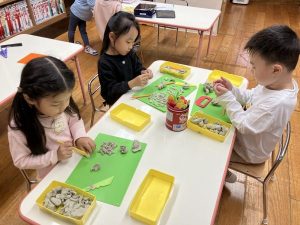 粘土あそびも大好きな子どもたち。 作るもののイメージが鮮明になってきました! 作りながらごっこあそびに発展していることもあり、 子どもたちの発想に驚かされます。 にじのいるか保育園 芝浦 港区芝浦2丁目3-31