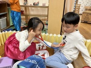 お医者さんになりきってあそんでいます。