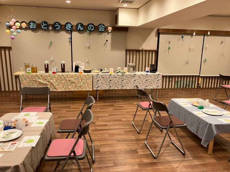 美味しいお茶を飲みながら、ママ同士のコミュニケーションの場として年2回開催しています。さすが女子会。お父さんの会よりも、にぎやかに楽しんでいます。