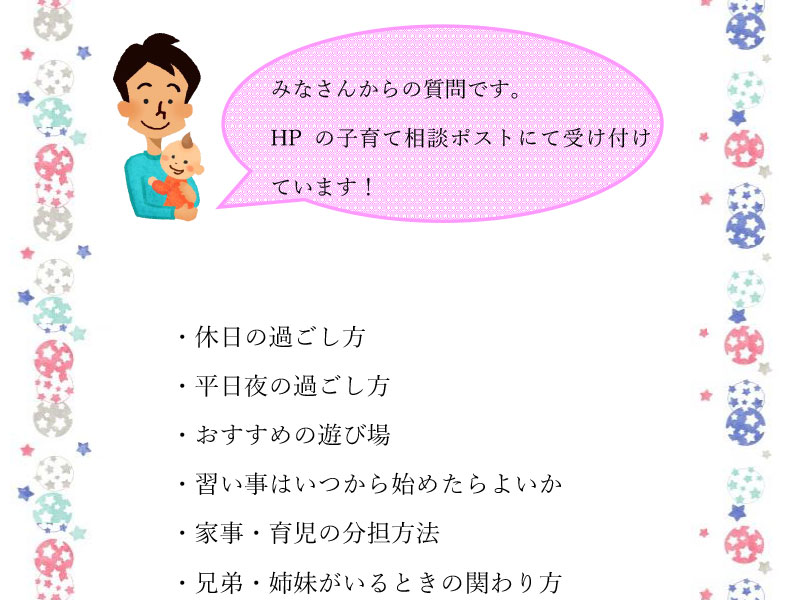 子育てにまつわる心配事やお悩みにHP上でQ&A方式でお答えしています。