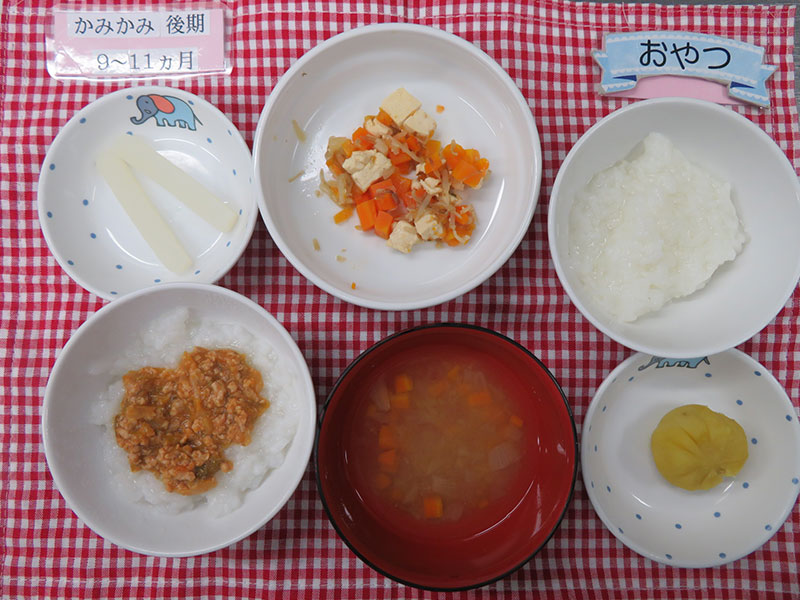 保育園で提供される中期食・後期食・完了食のレシピを紹介。咀嚼の発達状況に合わせた食材の固さ、形状も丁寧にお伝えします。